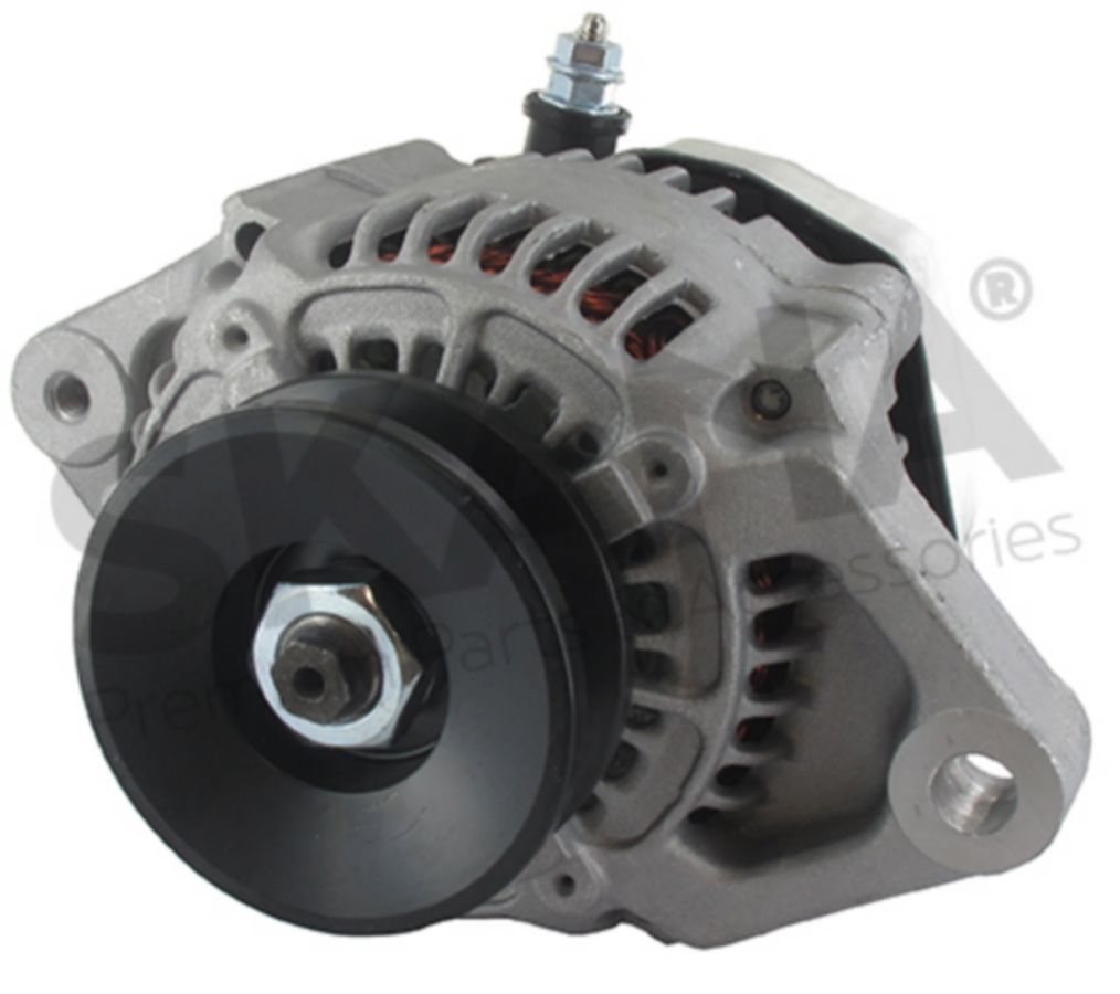Alternator JOHN DEERE 12 V, 55 A for lawnmower models 1203, 1420, 1435, 1445, 1505, 1515, 1545, 1565, 1600, 1600 Turbo, 1620, 1905 with diesel engine YANMAR, and UVT 2025R, 2027R, 2032R, 2320, 2520, 2720, 4100, 4110. Replaces original DENSO: 101211-2200, 101211-2201 - JOHN DEERE: AM880701, MIU800942 - YANMAR: 129052-77220.