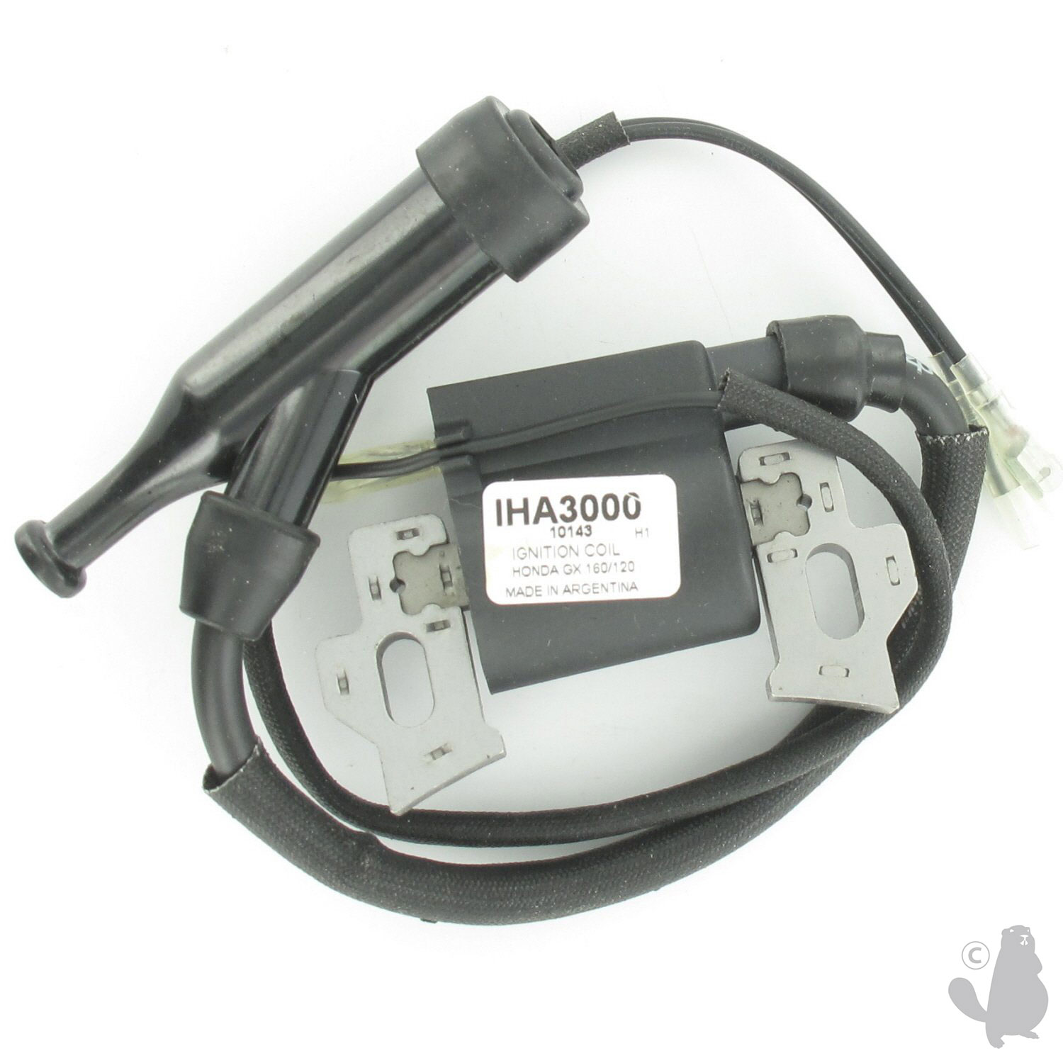 Ignition coil for HONDA engines GX110, GX120, GX140, GX160 and GX200 (pitch center: 57mm). Replaces original : 30500-ZE1-033, 30500-ZE1-063, 30500-ZE1-073.