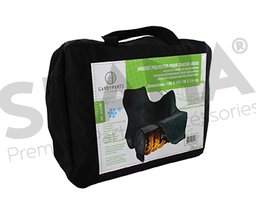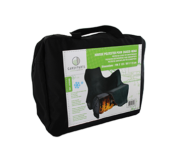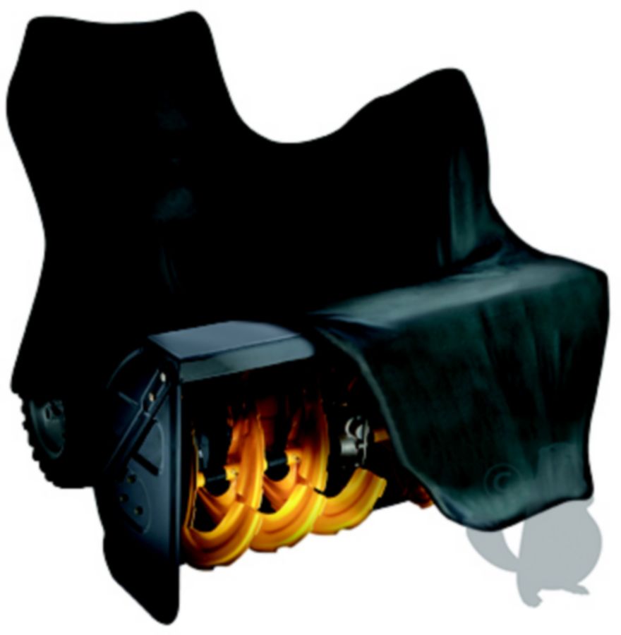Black polyester cover for snow throwers. Dimensions: 196 x 123/96 x 114cm