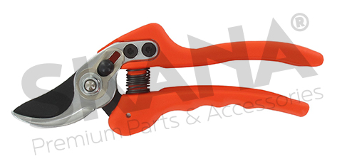 Pruning shear OZAKI especially for harvesting. Lightweight, ergonomically designed handle for small hands with one-handed locking system and replaceable blade and counterblade.