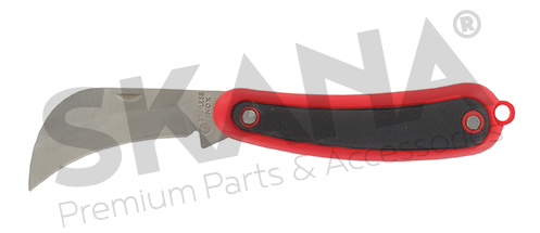 Pruning knife with bent foldable blade. Cutting length of 60mm. Bi-material grip.