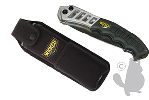 Foldable forestry saw with holder WICKED COMBO PACK. Cast aluminum handle WICKED Sharp TM. Carbon steel blade for fast and easy cutting of all wood types.