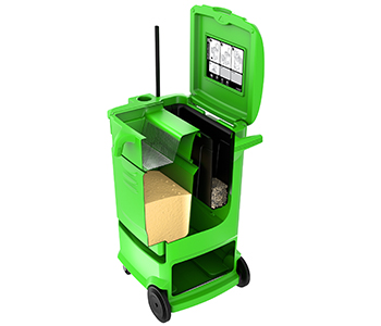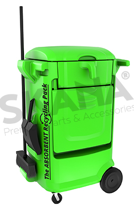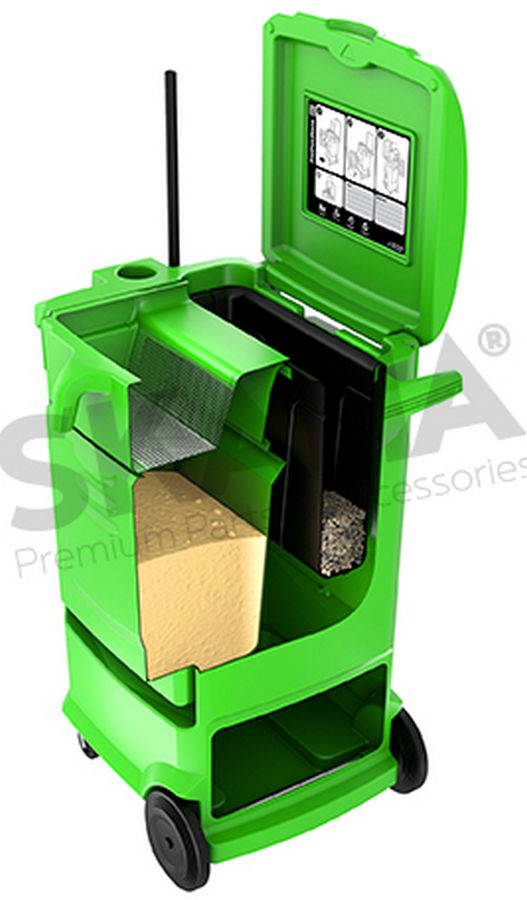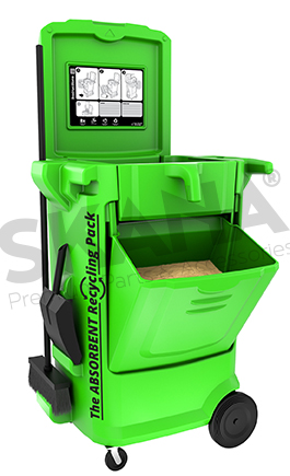 All-in-one, absorbent storage and recycling cart. Stores, distributes and recycles. Supplied with broom and collecting shovel. Use in combination with our absorbent 9202501.