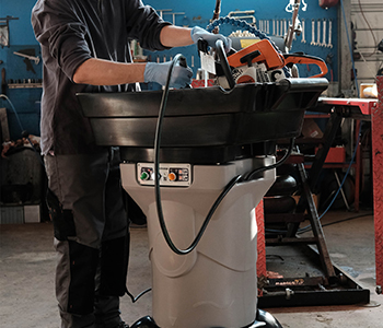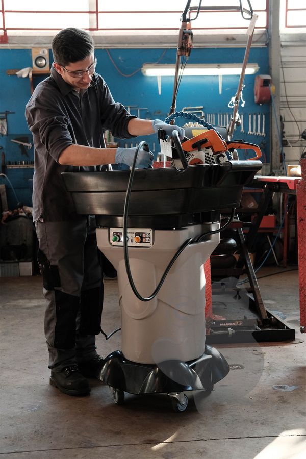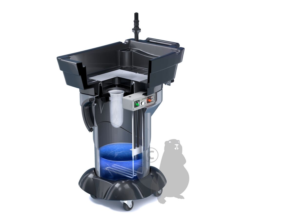 Mobile cleaning fountain (medium density polyethylene), regulated at 38 ° C for "hot" operation without solvent. Supplied with brush.
