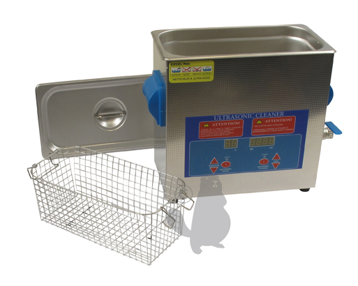 Ultrasonic cleaner with digital screen, ideal for cleaning carburetors and other engine parts. Tank capacity: 6 liter, heating power 300W, ultrasonic power 150 W. L: 300 mm, w: 155 mm, H: 150 mm