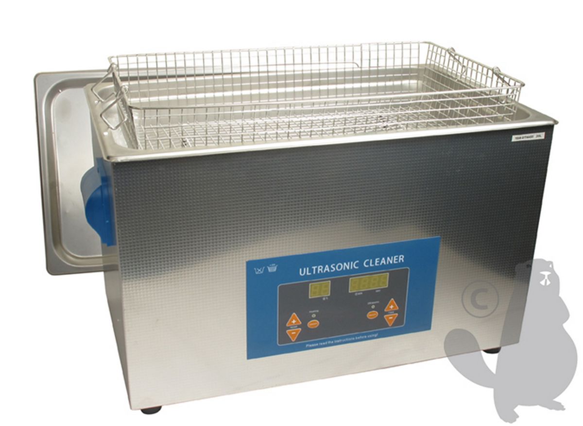 Ultrasonic cleaner 220V with digital screen, ideal for cleaning carburetors and other engine parts - Inox steel tank with capacity of 20 liters - ultrasonic power 400 W - Heating power 500 W. Dimensions of the tank: L: 500 mm, w: 292 mm, H: 150mm