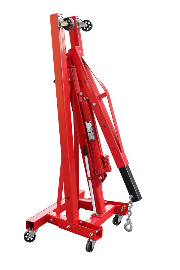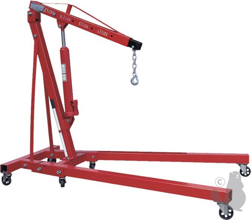 Workshop crane with hydraulic cylinder, max 2 T. Lifting height : 2,36 m. Dimensions on ground : 180 X 105 cm.