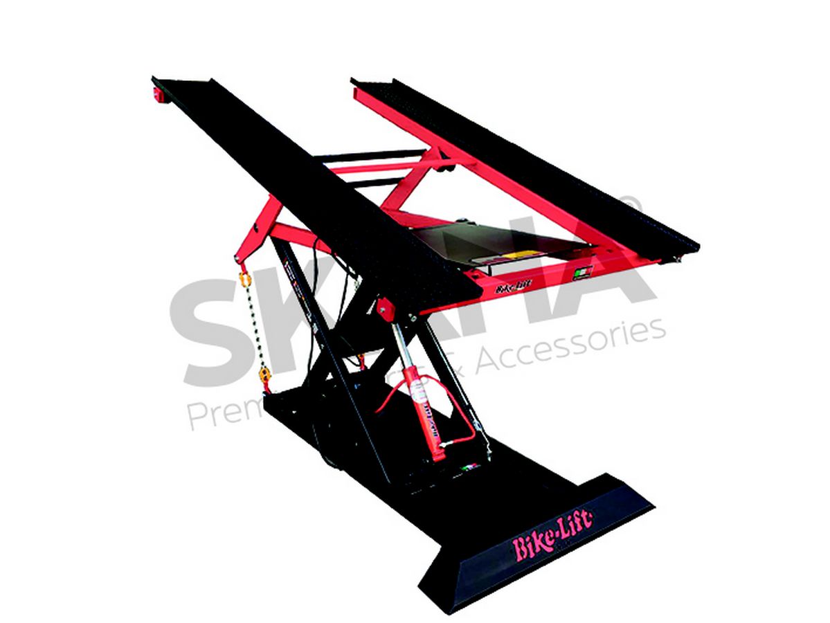 Frog 500 lift for ATV's, ride on mowers, snowmobiles, etc. 2 tables, 100 cm in front and 155 cm in rear. Max 500 kg. Electro-Hydraulic pump with 3 safety positions.