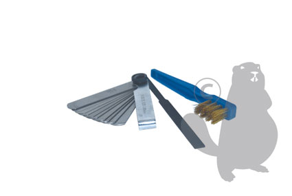 Spark plug and igntion maintenance kit. Contains 1 set of thickness gauges form 0,10 mm to 1 mm, 1 flat file and 1 metal brush.