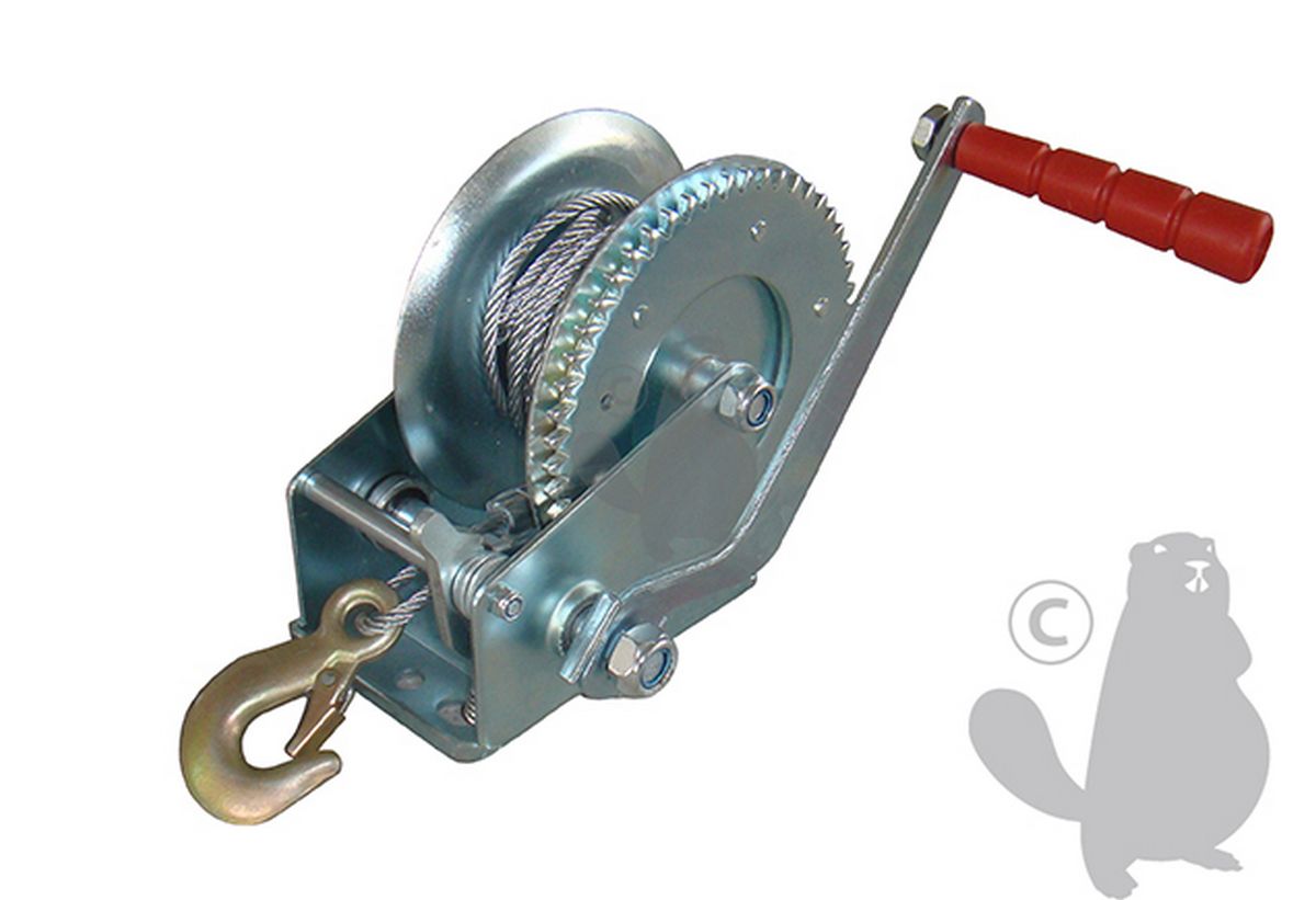 Winch, steel cable, Max 1200 daN. Capacity : 540 kg dead weight, 1000 kg rolling weight. Cable Ø: 4,8 mm. Length: 10 m