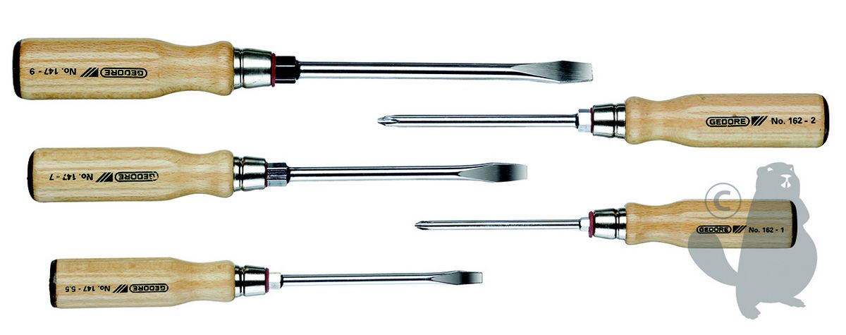Set 5 screwdriver with wooden handle with hexagonal shoulder, varnished wood and leather cap screwdriver : 5,5 ; 7 ; 9 Philips : 1 ; 2