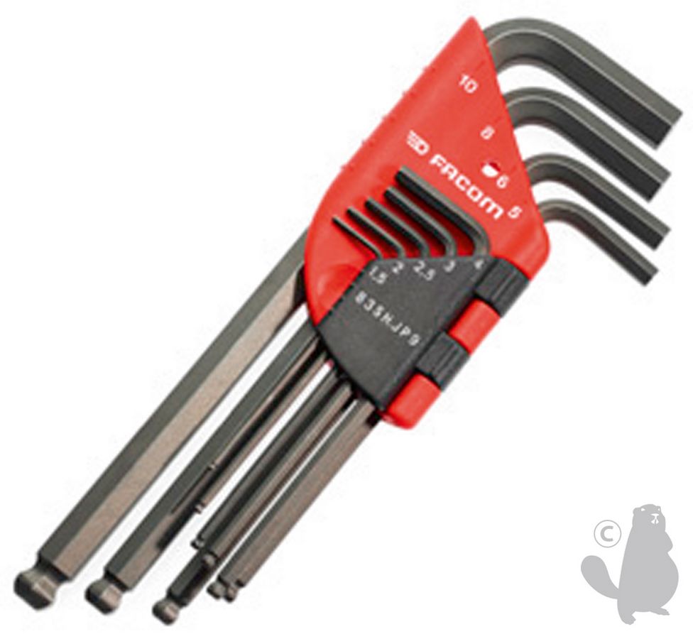 Male wrench set in case. NF/ISO 2936, DIN 911. Contence : 1,5 - 2 - 2,5 - 3 - 4 - 5 - 6 - 8 and 10mm
