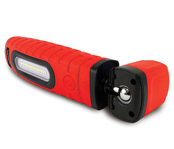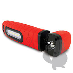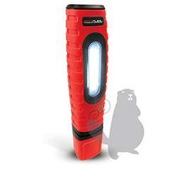 LED work light and torch with magnetic base, multifunction switch for 300 or 600 Lum, powered by 2 Lithium-Ion batteries of 2600 mAh, low-battery indicator. With USB charging cable. CETEOR by SCHUMACHER®.