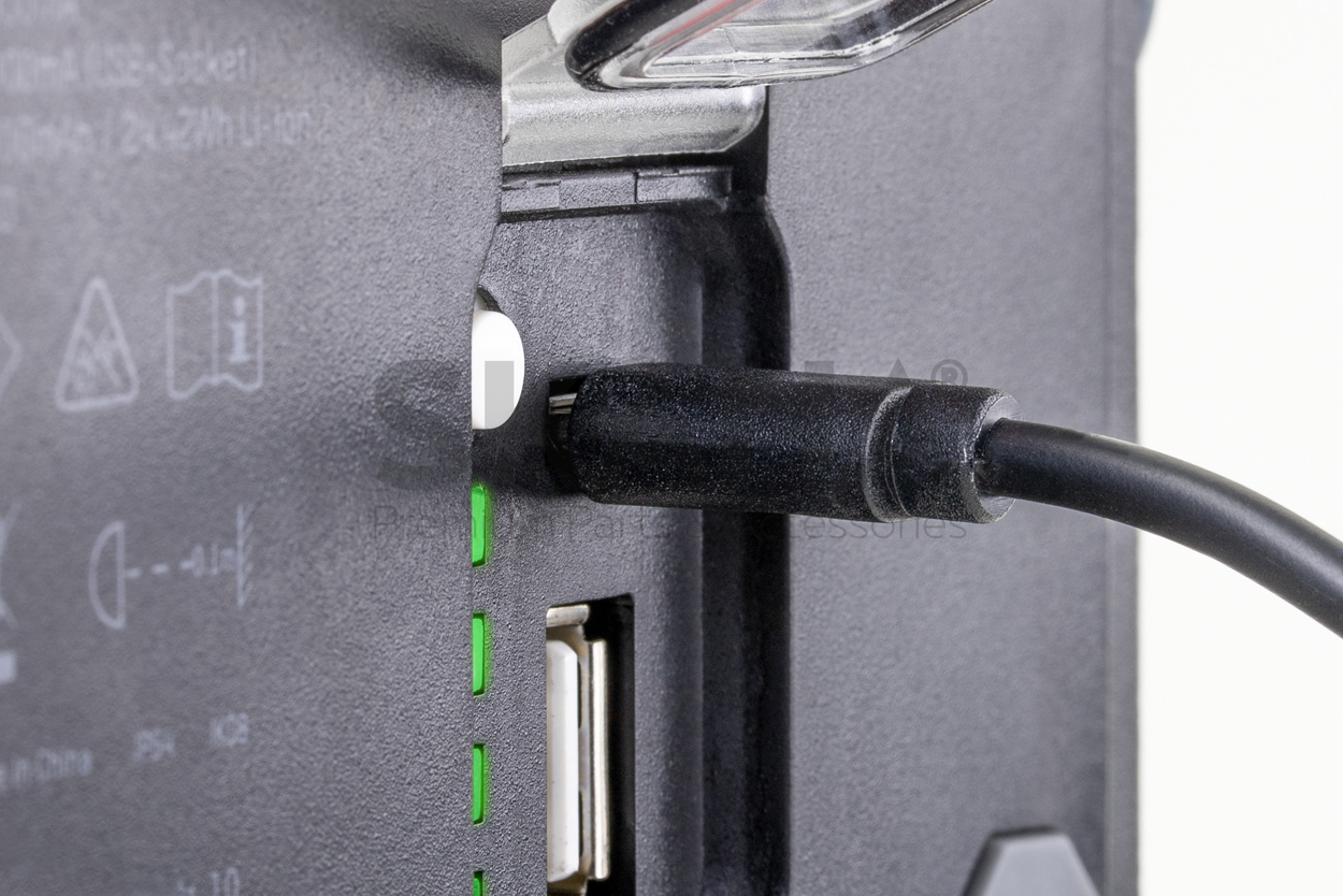 • Powered by 6600 mAh Li-Ion battery rechargeable via USB.