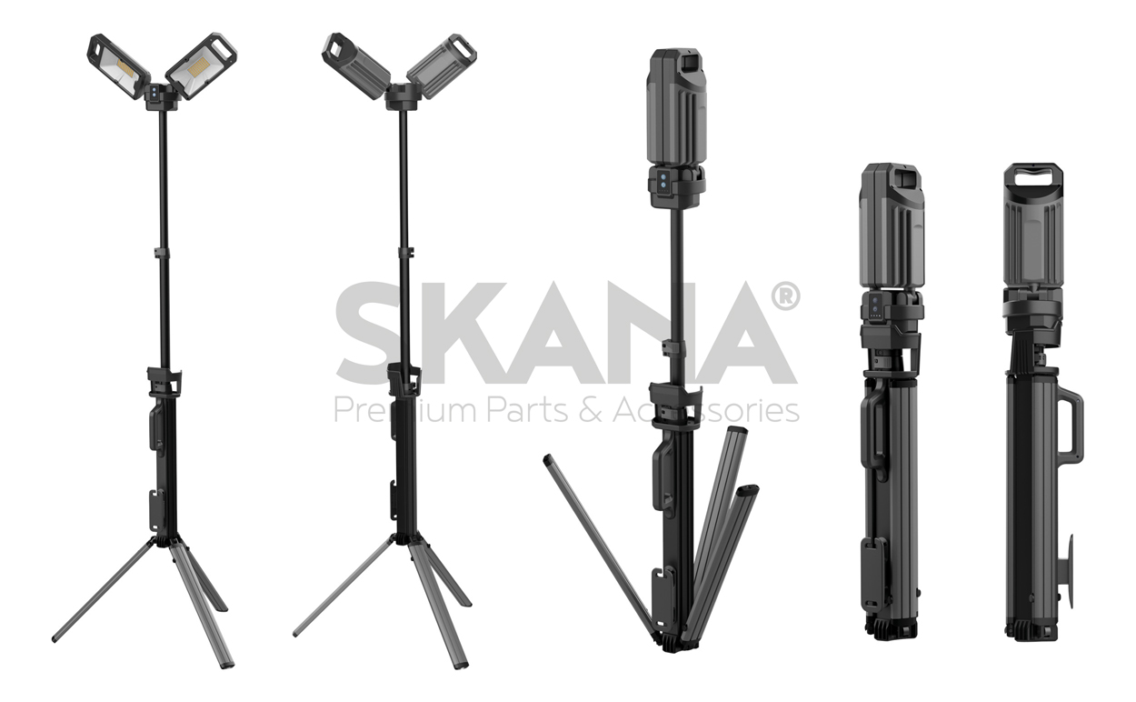 • Light source and power with 2 30 W SMD LED modules, adjustable and tiltable.