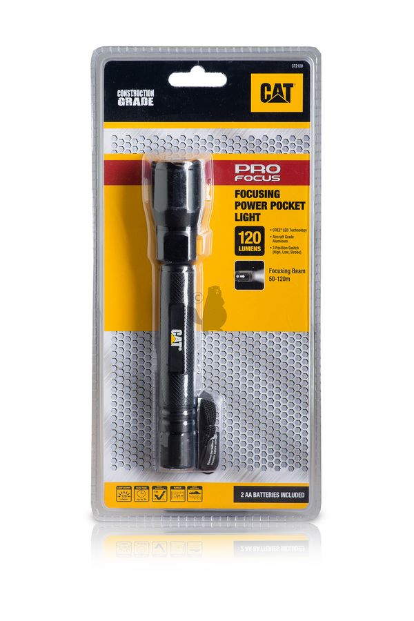 CATERPILLAR CREE LED 120 Lum focusing power pocket - 2 x AA incl. - Alu - 3 Pos.