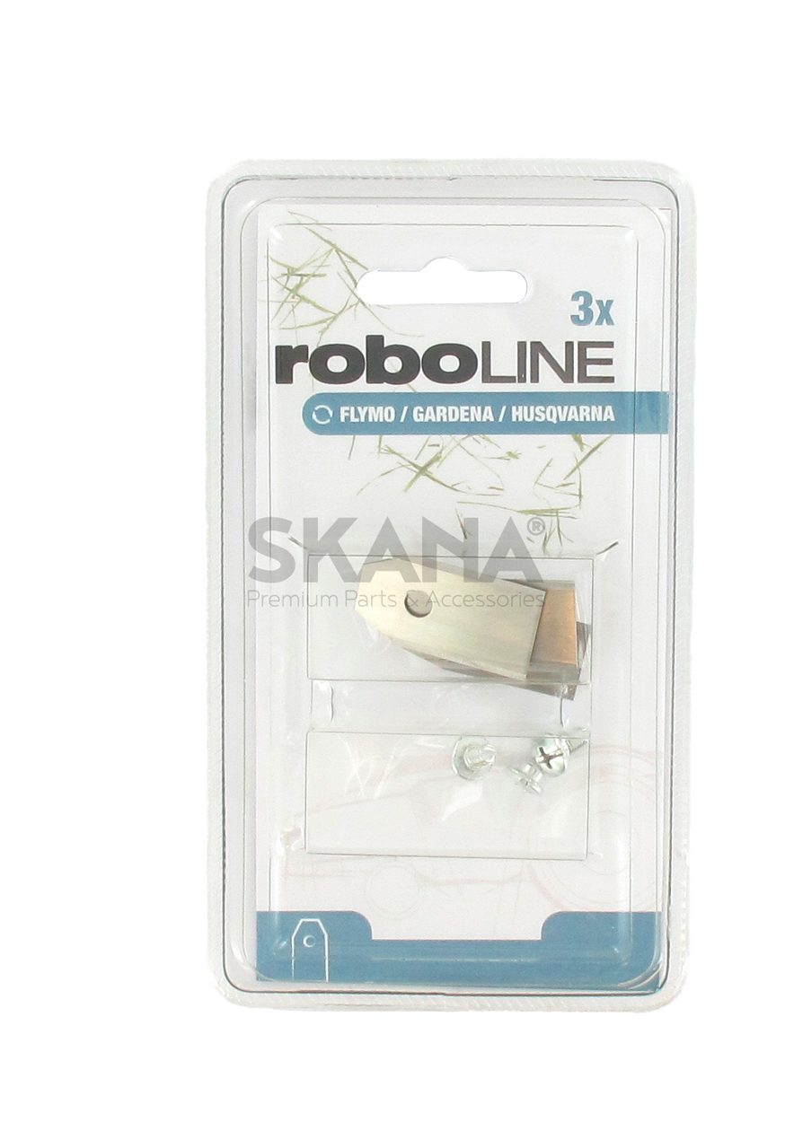Pack of 3 blades for CRAMER: RM 800, 1000, 1500, 2000 - EGO: RM2000E, RM4000-E - GARDENA: R38Li, R40Li, R45Li, R50Li, R70Li, R80Li, R160, Sileno City, Sileno Life, Sileno minimo, Sileno+ - GREENWORKS: Optimow 4, 5, 7, 15 - HUSQVARNA: Automower 105, 115H, 220 AC, 230 ACX, 260 ACX, 265 ACX, 305, 308, 310, 315, 315X, 320, 330X, 405X, 415X, 420, 430X, 430XH, 435X AWD, 440, 450X, 450XH, 520, 520H, 535 AWD, 550, 550 EPOS, 550H, Solar Hybrid, Automower 305E NERA, Automower 310E NERA, Automower 320 NERA, Automower 405XE NERA, Automower 410XE NERA, Automower 430X NERA, Automower450X NERA, Automower 560 EPOS, Automower 580 EPOS, Automower 580L EPOS, Ceora RZ 43L, Ceora RZ 43 M - POWERWORKS: Robot P3, P5, P7, P10, P15 - SEGWAY: Navimow H500E, H800E, H1500E, H3000E-VF, i108 E & X-Serie - YARDFORCE: SA500ECO, SC600ECO, SA900, SA600H, SA800PRO, AMIRO 400I, X60I. Replaces: 2908686, 2916986, AB1009R, 28700396, 535138702, 535138802, 577606402, 577606403, 577864602, 577864603, 599805301, 966809501.