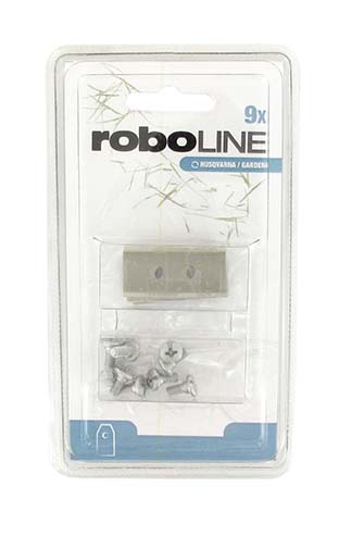 Blister pack of 9 blades adaptable to HUSQVARNA robots models AUTOMOWER G2 (2003/B, AUTOMOWER G2 2006, SOLAR HYBRID 210C, 220AC, 230ACX, 260ACX, AUTOMOWER 305 - GARDENA model R40LI. Reversible model delivered with screws. Replaces original: 5228516-02, 5228517-02, 5228518-02