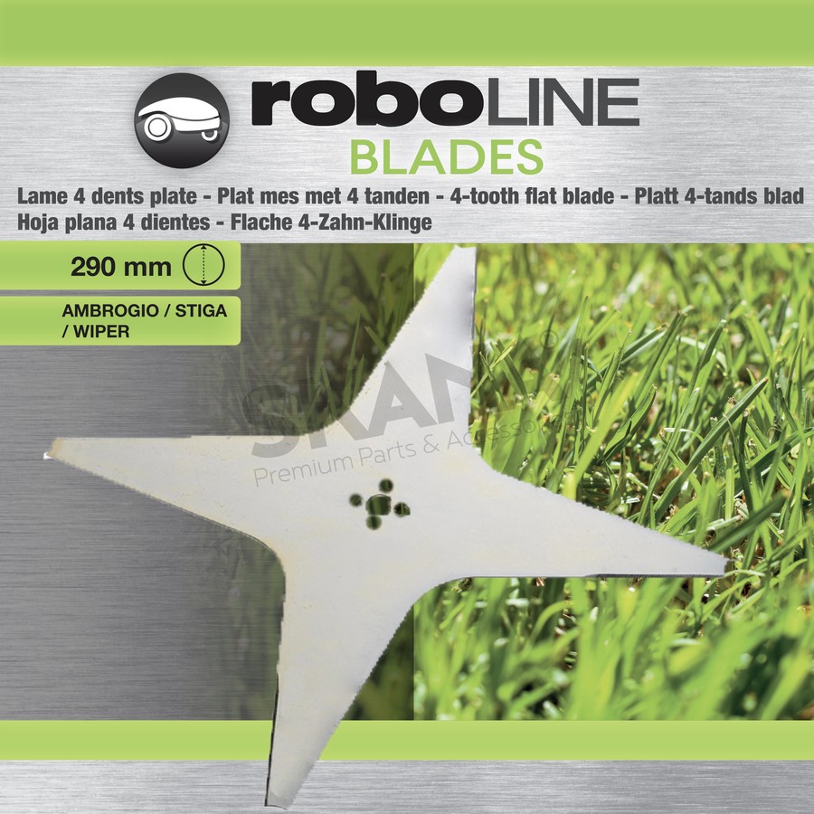 Blister pack with 4 flat teeth for AMBROGIO / WIPER L200 - STIGA robots Autoclip 325, Autoclip 328S, Autoclip 520, Autoclip 522, Autoclip 523, Autoclip 524S, Autoclip 527, Autoclip 528S, Autoclip 530SG, Autoclip 550SG, Autoclip 920S- Ø: ext: 290mm. Replaces origin: CS D011202, 025D004602, 1126-9145-01.