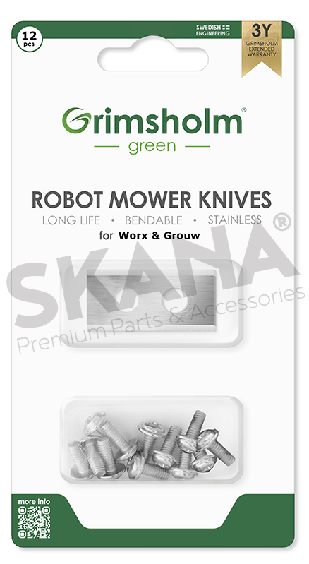 Blister pack of 12 blades for ECLOZ 600 - EINHELL Freelexo Kit 500, 600, 900 - KRESS Mission Nano KR101E, Mission KR100, Mission KR110, Mission KR111, Mission KR112, Mission KR113, Mission KR120E, Mission KR121E, Mission KR122E, Mission KR123E, Mission Mega KR133E, Mission Mega KR136E, Mission RTKN KR172E, Mission RTKN KR172E.A, Mission RTKN KR173E, Mission RTKN KR174E, Mission RTKN KR230E, Mission RTKN KR233E, Mission RTKN KR236E - STERWINS ST400 ( 18VRLM1-400.1), ST800 (18VRLM1-800.1) - WORX LANDROID L1500i, L2000i, M1000, M1000i, M1200i ID B, M800i, M900, M1500, S Basic, S450i, S500i, S700i, WG754E, WG757E, WG758E, WG791E.1, WG791E, WG794E, WG793E.1, WG793E, WG795E, WG796E.1, WG798E, WG799E, WORX WG797E.1, WR090S, WR091S, WR093S, WR095S, WR101SI, WR102SI, WR103SI, WR105SI, WR106SI, WR110MI, WR111MI, WR113MI, WR115MI. Replaces original: 81186, KA002, WA0176.