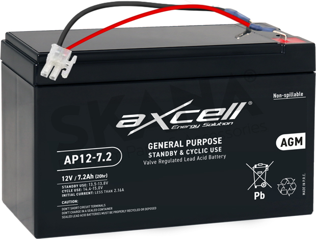 AGM battery 12V - 7,2A - 86,4Wh suitable for robotic mowers ROBOMOW models RX12U, RX20 Pro, RX20U - WOLF models Loopo S150, Loopo S300. Replaces original: MRK9101A, MRK9101A-ET.