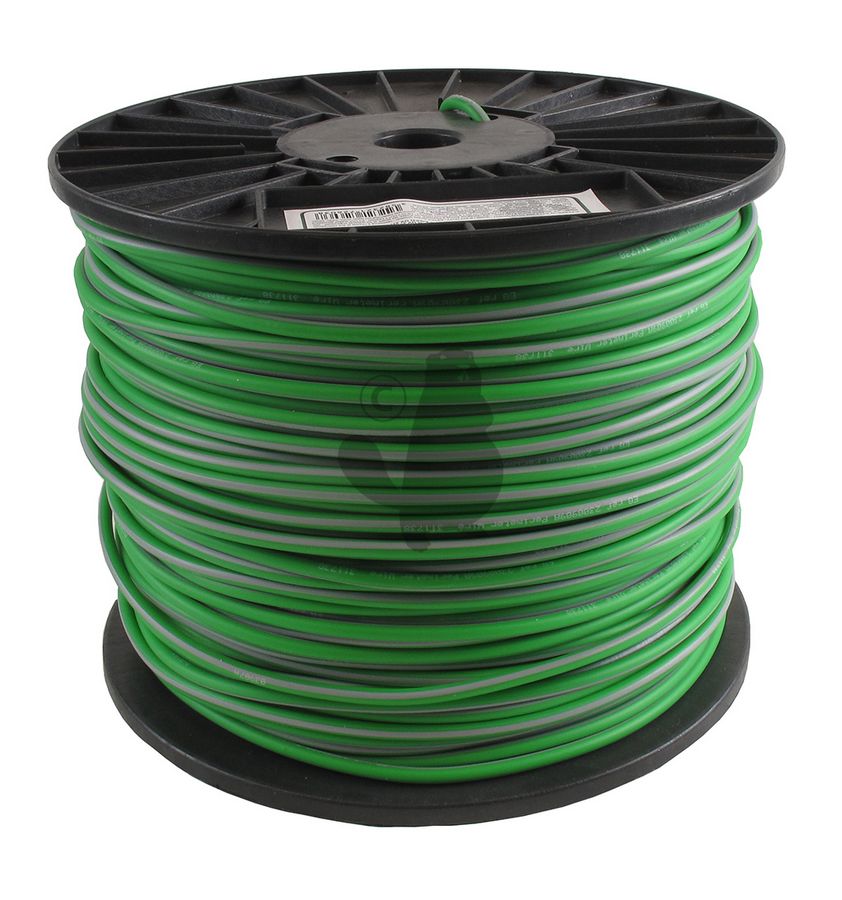 Perimeter cable robotic mower XLPE/EPR UV ZH 1,5 mm² TC-UV GR/2GY - HEAVY DUTY quality - extra double insulated - elevated ozone and weather resistance - increased resistance to abrasion - increased resistance to moisture, acids, alkalis and organic solvents - 250 meter on plastic reel - brand-independent application. Dimensions of the perimeter cable spools : bore: 35 mm - ext ø: 280 mm - height: 215 mm.