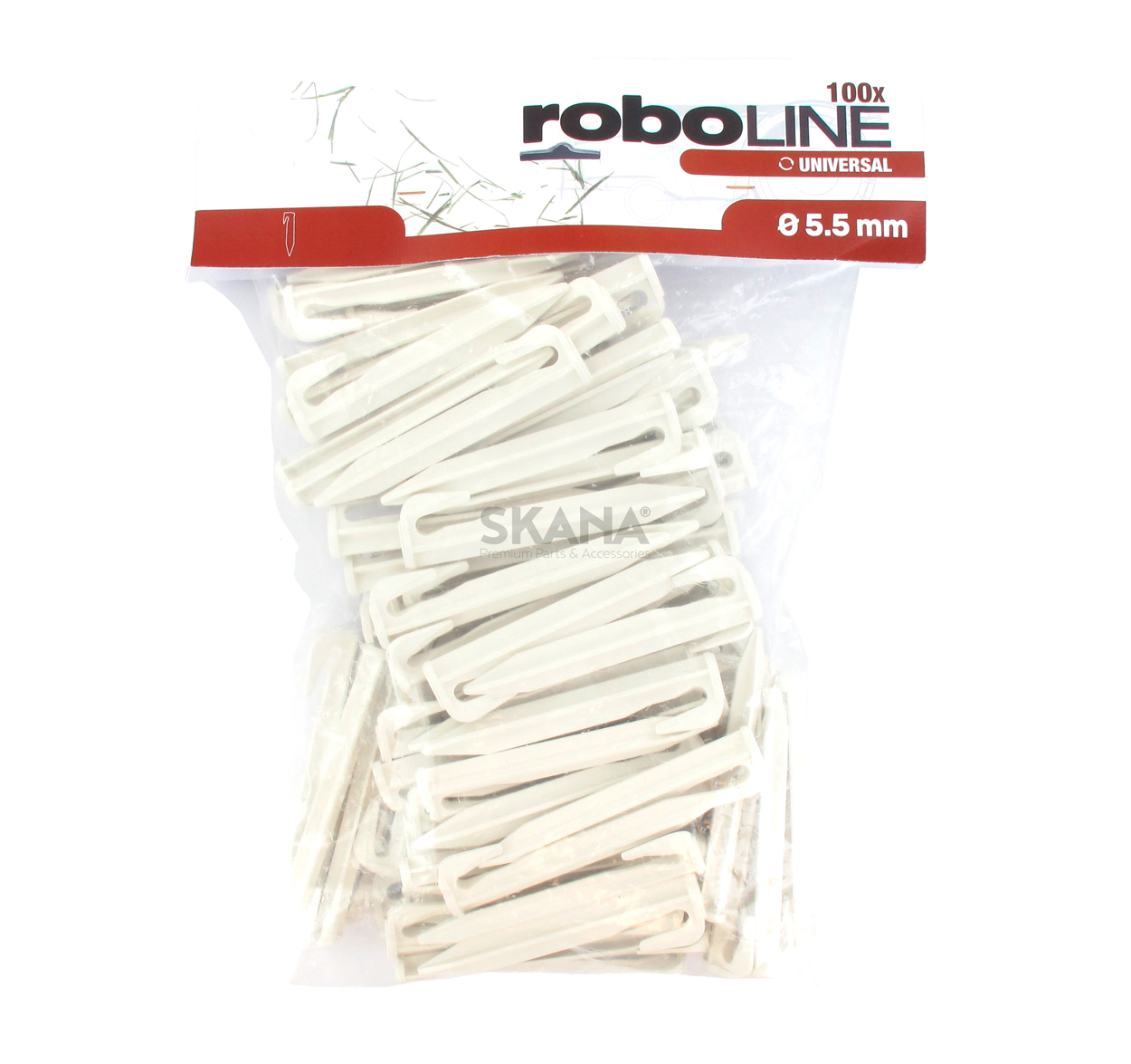 Pack of 100 corn-based universal studs / jumpers. For attaching boundary wires of robotic mowers. Length: 95mm.