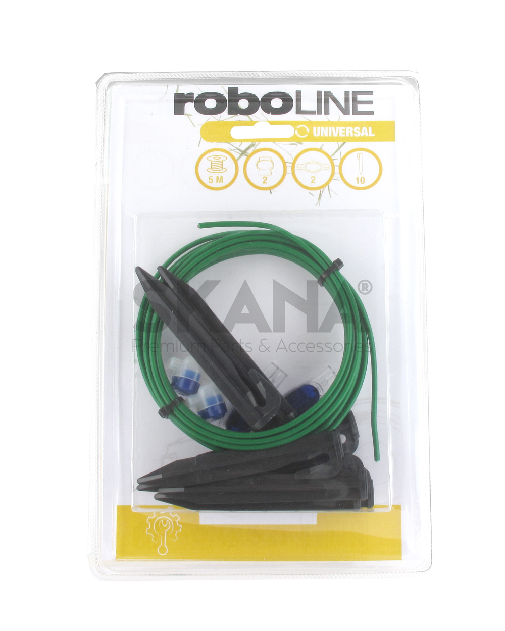 Repair kit with content: 5 m x 1,5 mm² robot installation cable, 2 charger connectors, 2 insulated connectors, 10 cable fixing nails. Replaces GARDENA: 4059-20, 405920 - HUSQVARNA: 967 10 49-01 967104901.