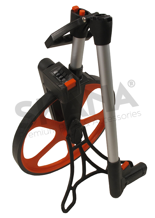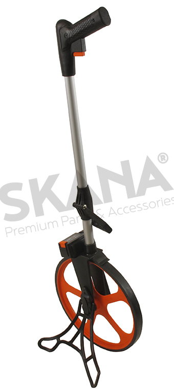 Odometer (distance measurer) with large diameter wheel (1m circumference) facilitating use on all types of terrain. With rotary counter 0 to 9.999,9m. Tolerance +/-0,05%.