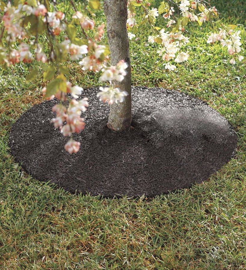 Round tree mat made of green recycled rubber, can be used around a post or tree. Ø ext: 30cm (12 ") - thickness 13mm - bore: 10 cm.