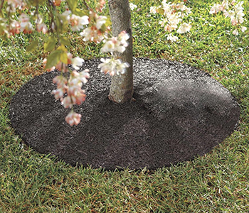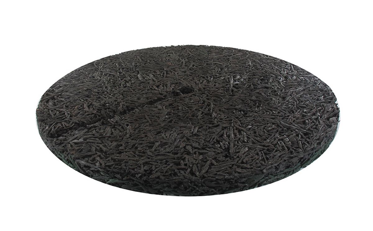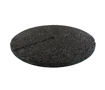 Round tree mat made of green recycled rubber, can be used around a post or tree. Ø ext: 75cm (30") - thickness 13mm - bore: 100mm.