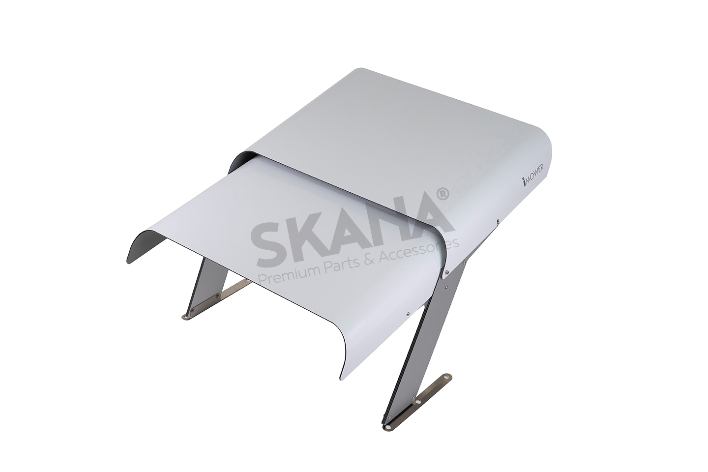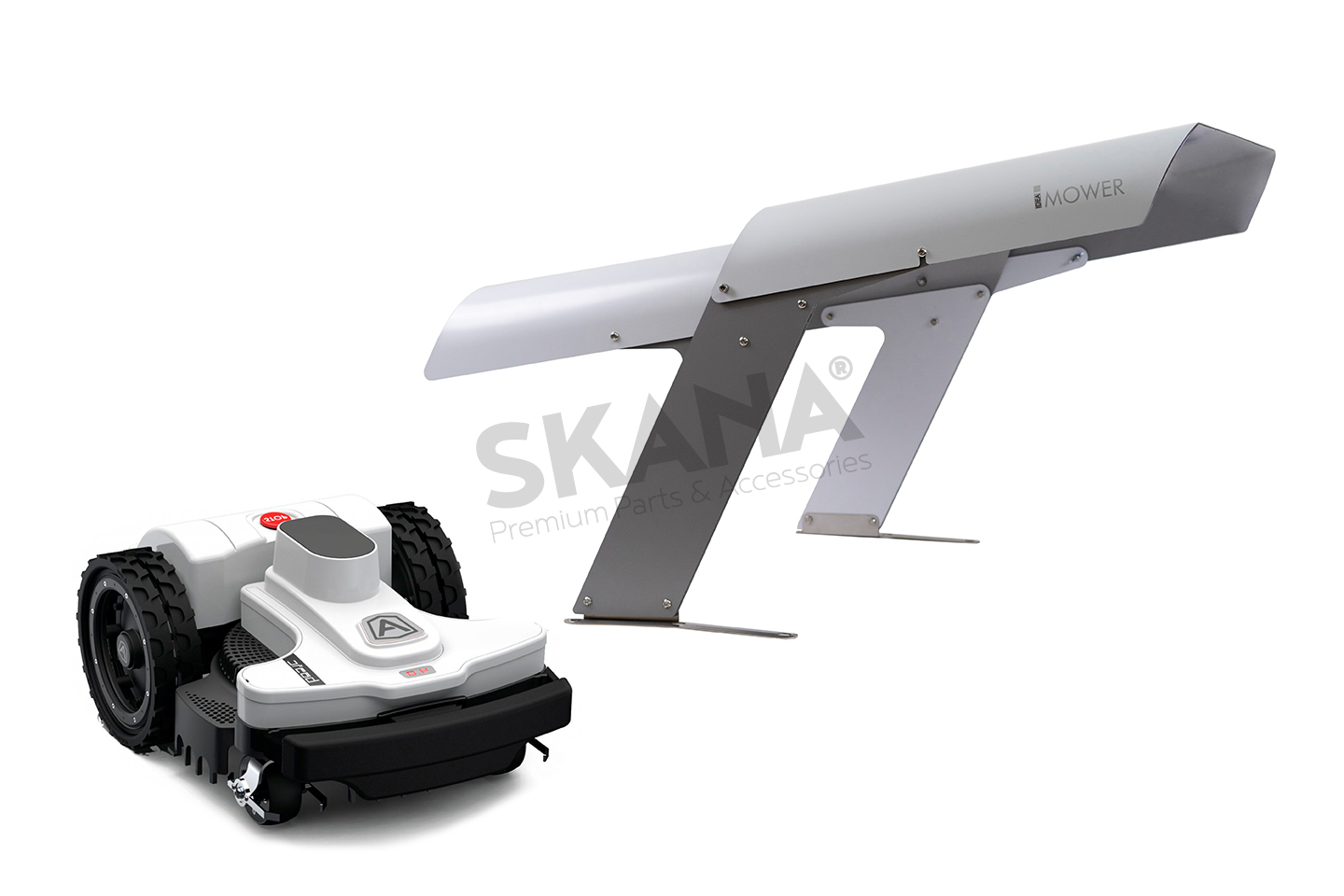 ONE 2.1 Custom robot shelter in silver and white. Sunroof. Made of 3 mm thick composite aluminum in stainless steel. Fixing to the ground independent of the charging station. Shocks received by the garage cannot damage the base or the robot. To be assembled by the customer. Dimensions: length: 840 mm, width: 720 mm, height: 400 mm. Ideal for AL-KO Robolinho 300E, 500, 800W, 1200W, 2000W - AL-KO SOLO 450W, 700W, 500W, 1150W - AMBROGIO Robot L250, L350, 4.0, 4.36, Quad - CRAMER RM800, RM1000, RM1500, RM2000, GREENWORKS Optimow 4, 5, 7, 10, 15 - GARDENA SILENO PLUS - HUSQVARNA Automower 305, 310, 315, 315x, 405x, 415x, 420, 440, 430x, 450x, 520, 550, 550epos - HONDA Miimo Hrm 310, 520, 3000 - KRESS MISSION, NANO MISSION, Mega Kr133, K136es - ROBOMOW Rs, Rk - LANDXCAPE LX8, LX7 - CUB CADET Xr3 - STIGA 530Sg, Autoclip 225S - STIHL iMow 422, 422P, 422PC, 522C, 632, 632C, 632P, 632PC - WIPER I, C, F, K, Xl, P - WORX Landroid M500, M700, L1000, L2000 - YARD FORCE, séries Amiro, X, SA, Compac