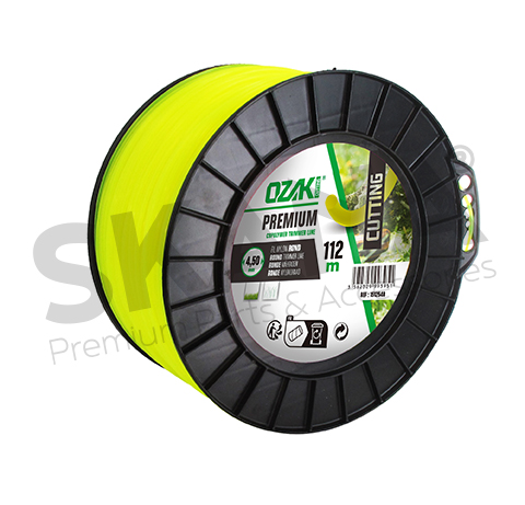 Spool round trimmer line PREMIUM LINE OZAKI® - Length: 112 m, Ø: 4,5mm. Round profile, made with virgin materials, high durability, heavy duty, excellent resistance at eyelets.