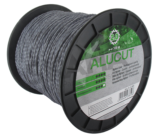 HYBRID-TWISTED ALUCUT - Square twisted 2.0 mm x 360 m (spool) - black. Features: particularly impact and abrasion resistant, extremely wear-resistant, special cutting edge reinforcement, nylon copolymer with aluminum particles. (Aluline, trimmer line, mowing line, nylon line).