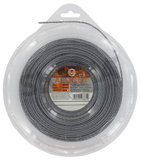 HYBRID-TWISTED ALUCUT - Square twisted 2.4 mm x 87 m (donut) - black. Features: particularly impact and abrasion resistant, extremely wear-resistant, special cutting edge reinforcement, nylon copolymer with aluminum particles. (Aluline, trimmer line, mowing line, nylon line).