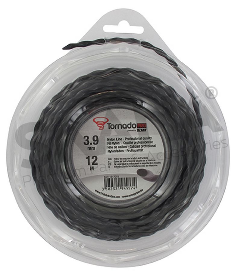 OZAKI TORNADO PRO - Spiral shaped 3,9 mm x 12 m (Blister) - black. (aerodynamic, low noise, trimmer line, mowing line, nylon line, quiet mowing line)