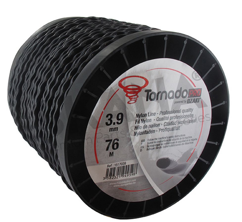 OZAKI TORNADO PRO - Spiral shaped 3,9 mm x 76 m (Spool) - black. (aerodynamic, low noise, trimmer line, mowing line, nylon line, quiet mowing line)