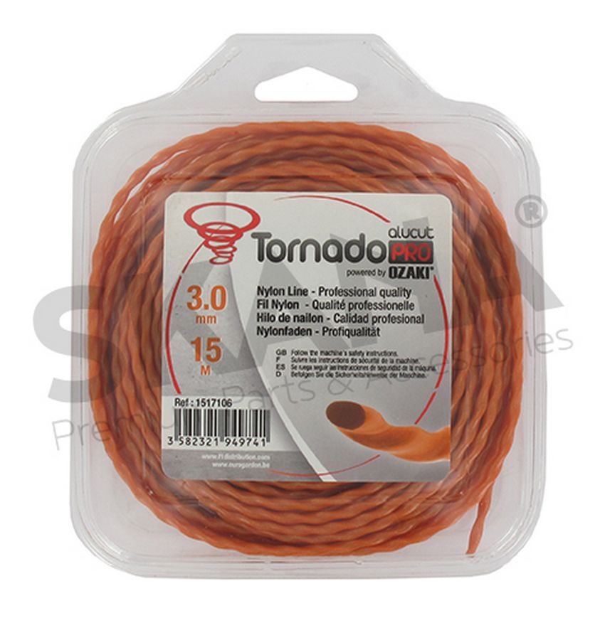 OZAKI TORNADO PRO ALUCUT - Spiral shaped 3,0 mm x 15 m (Blister) - orange. (aerodynamic, low noise, Aluline, trimmer line, mowing line, nylon line, quiet mowing line)