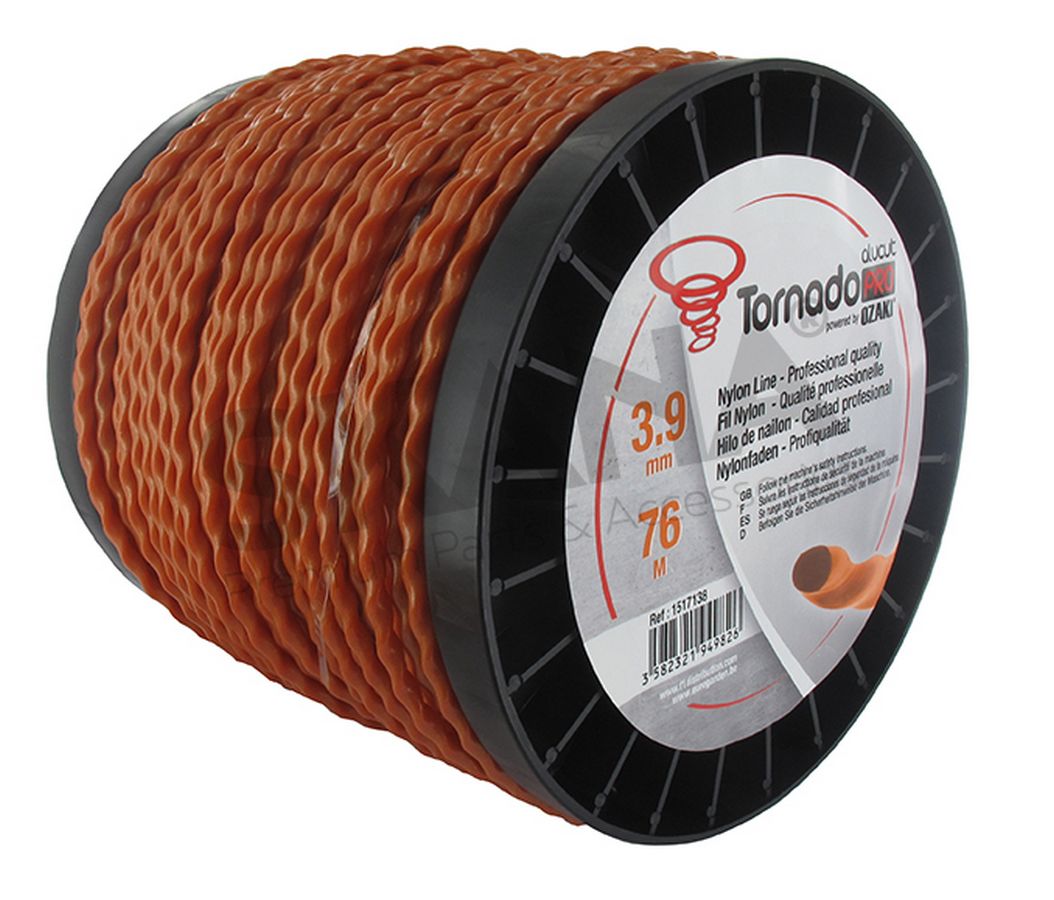 OZAKI TORNADO PRO ALUCUT - Spiral shaped 3,9 mm x 76 m (Spool) - orange. (aerodynamic, low noise, Aluline, trimmer line, mowing line, nylon line, quiet mowing line)