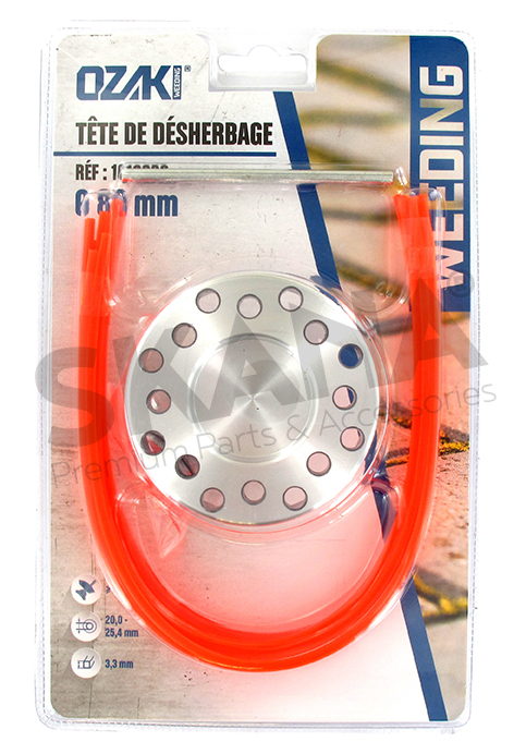 Aluminium weed removal brush with 16 square nylon lines (3,3mm) suitable for brushcutters up to 30cc. Universal model for cleaning pavements, borders, etc.