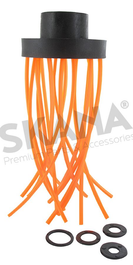 Plastic brush 16 nylon lines, diameter 80 mm, recommended for brushcutters to 30cc. Accepts wire to 3 mm diameter. Universal model (20 and 25,4 mm bore) for cleaning bricks, concrete edges, tiled pools,etc. Supplied with nylon line with diameter of 3mm.