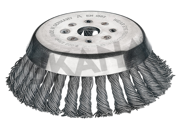 Conical brush head with 36 PREMIUM metal braids for STIHL, DOLMAR, ECHO, JONSERED, SOLO brush cutters from 1 hp (0.7 kW) to max 2.5 hp (1.8 kW). Diameter: 155mm, bore: 20mm, wire diameter 0.5mm. For cleaning interlocking pavers, concrete curbs, etc. Special tool not to be used at full speed.