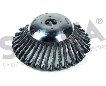 Conical brush Ø 170 mm with very resistant twisted steel bristles. 25.4mm bore. Ideal for working on pavers, concrete surfaces and curbs. Max working speed: 10000 rpm.