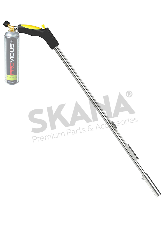 Thermal weed remover with ergonomic handle "soft grip", integrated Piezo electric ignition, 1000 ° C. Connection 7/16 (delivered without gas cartridge).