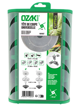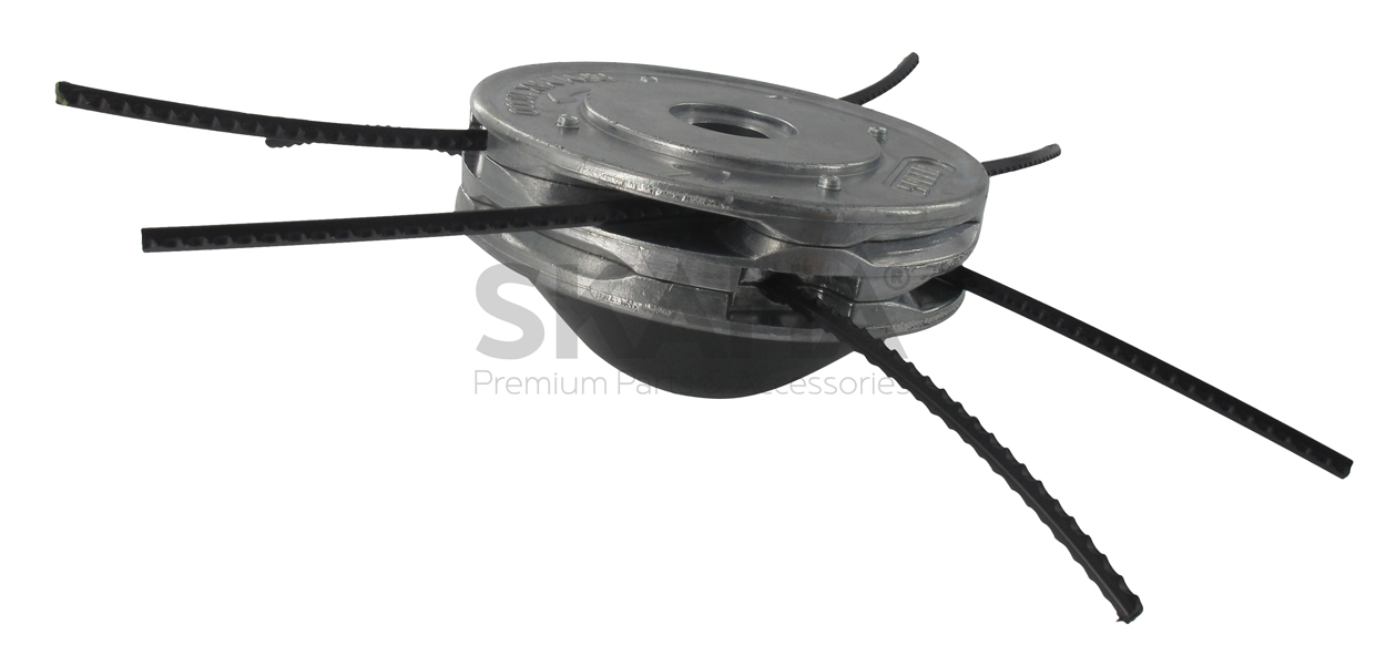 Universal 4 line universal trimmer head with easy line feed. Upper part in aluminium. Lower part in resin. Supplied with 8 NYLSAW lines. For machines from 40 cc and more.