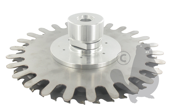 Aluminium brushcutter head > 35cc. Center hole 25,4 mm. Including brushcutter blade with 40 carbide teeth, Ø 230 mm, tools, user's manual and free rotarting guidance disc. Ideal for working around trees, posts or walls, without contact with or launching o