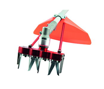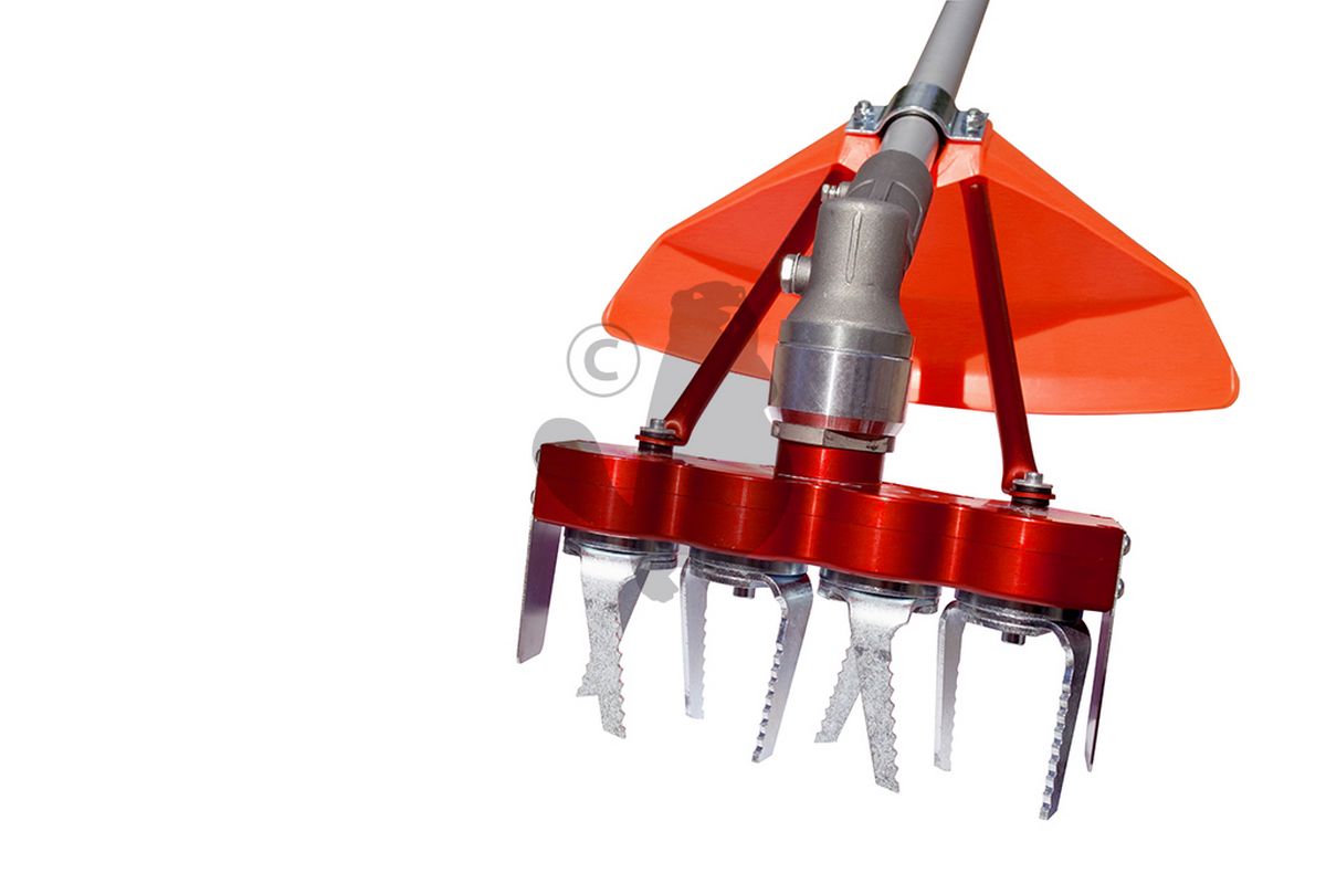 Universal tiller system with 4 counter-rotating milling blades MYTILLA 4. Suitable for any brush cutter with straight tube. Working width 200 mm. Comes with adapters.
