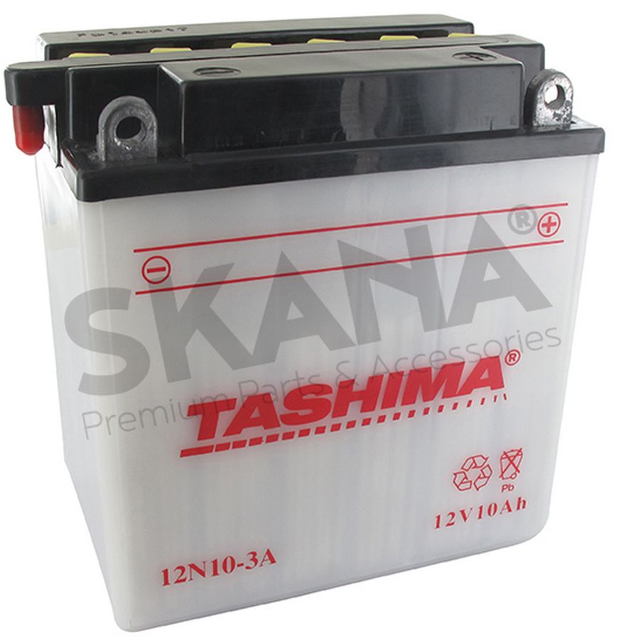 Battery 12V, 10A. L: 135, w: 90, H: 145mm, + right for motorcycles. (acid not included). The battery must be filled with battery acid and sealed before it is delivered to the user. The battery may not be sold to the private end-user with battery acid in separate packaging (Regulation 2019/1148).