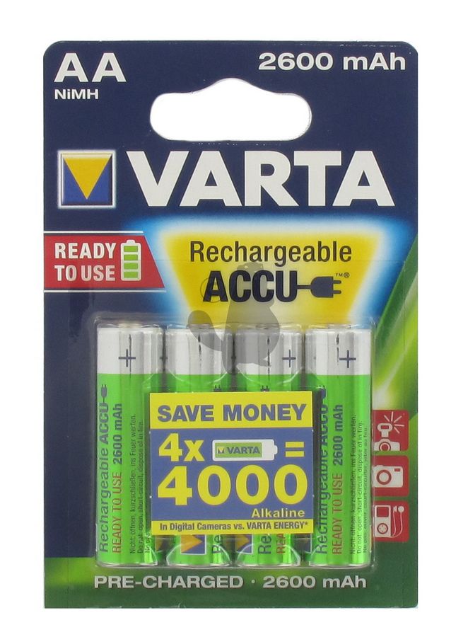 Blister from 4 rechargeable accumulators VARTA 1,5 V - 2600 mAh - Type AA HR06.