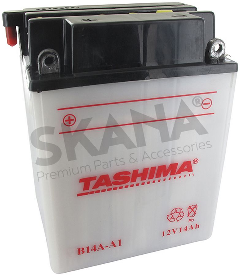 Battery reinforced 12V, 14A. L: 134, w: 89, H: 176mm, + left for quads. (delivered without acid). The battery must be filled with battery acid and sealed before it is delivered to the user. The battery may not be sold to the private end-user with battery acid in separate packaging (Regulation 2019/1148).